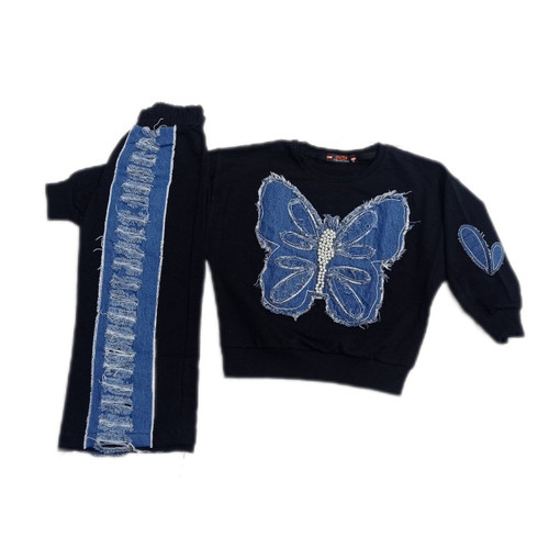 ست بلوز و شلوار دخترانه مدل پروانه جین مرواریدی – اسپرت شیک و خاص