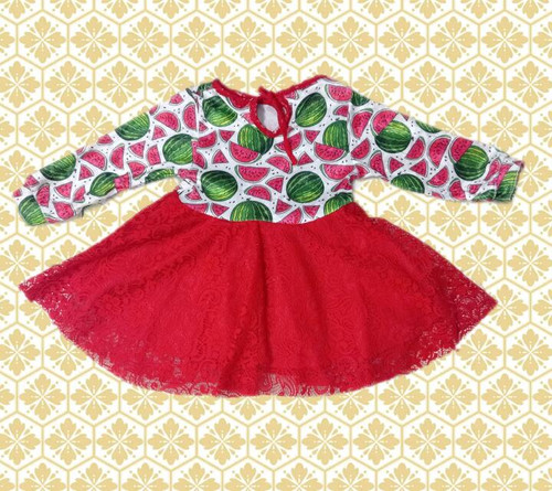 پیراهن مخمل دخترانه یلدایی طرح هندوانه
