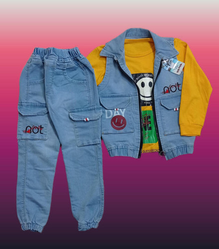 ست سه تکه پسرانه کت و شلوار جین تیشرت نخ پنبه نگینی حراج