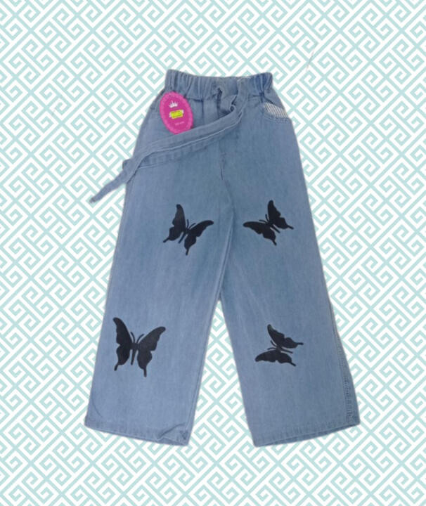 شلوار جین بچگانه مدل بگ دخترانه طرح پروانه